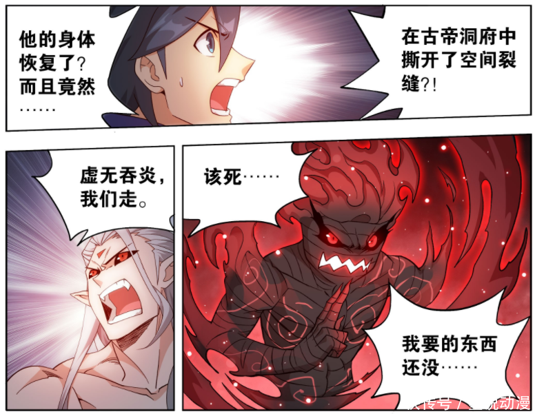 《斗破苍穹》漫画版离完结是越来越近,不出意外的话,四月份应该正式完结。如今陀舍古帝洞府大战结束,魂天帝带着虚无吞炎离开陀舍古帝洞府。此战结束之后,魂天帝将会彻底甩开古元和烛坤,下一次见面,他一招就能重伤古元和烛坤。